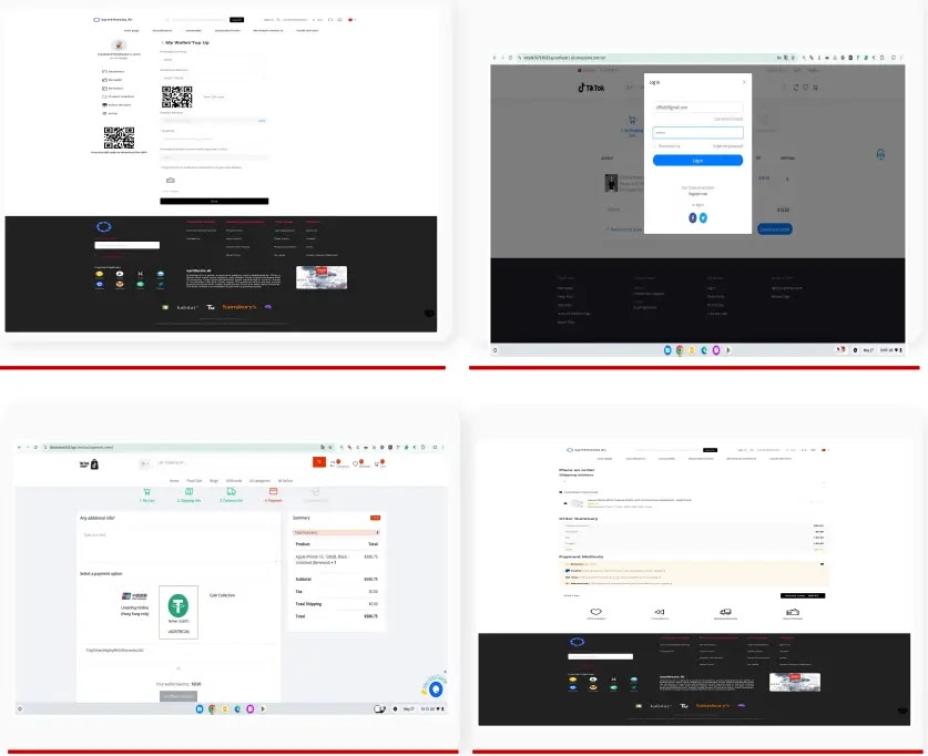 该活动将传统钓鱼与前沿恶意软件分发手段结合,同时针对普通购物者和 TikTok 联盟计划参与者。攻击者通过仿冒 TikTok Shop 及相关平台界面,构建恶意店铺生态系统欺骗用户;利用低成本顶级域名创建相似域名,托管钓鱼页面和分发恶意应用,还通过 5,000 多个应用下载站点及二维码等传播特洛伊木马化应用,借助 AI 生成内容和虚假社交广告面向全球用户攻击,影响范围超 TikTok Shop 官方覆盖的 17 国。所分发的木马应用搭载SparkKitty间谍软件变种,命令与控制(C2)服务器地址被硬编码,通过POST/GET请求回传设备信息、TikTok会话凭证(如PHPSESSID),并重点扫描相册中加密货币钱包的种子短语截图,实施数据窃取。