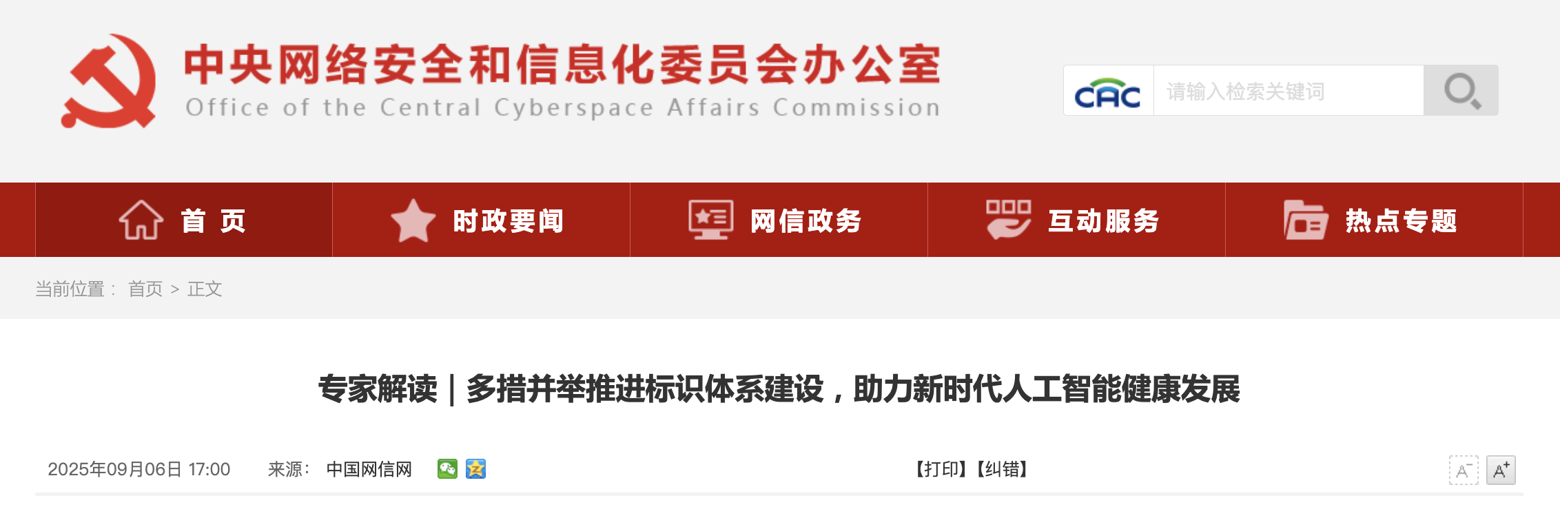 信息来源:中央网络安全和信息化委员办公室 https://www.cac.gov.cn/2025-09/06/c_1758880709361356.htm