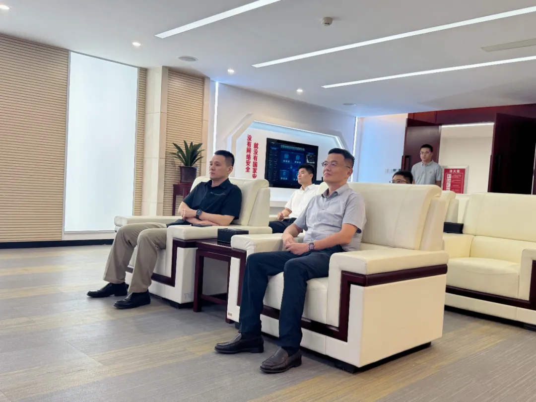 活动当天,聚铭网络董事长唐开达一行在安徽通服网安中心主任张勇的陪同下,参观了安徽通服智慧展厅,深入了解其在数字化服务领域的综合能力。