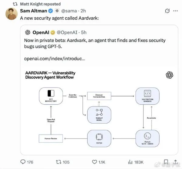 4、OpenAI推出GPT-5驱动安全代理Aardvark 能自主找Bug