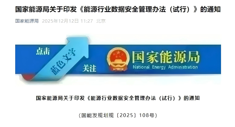 国家能源局印发《能源行业数据安全管理办法(试行)》